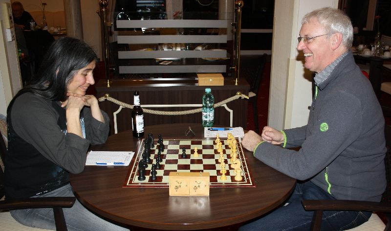 Mannschaftsführerin Mariam Afschar, an Nummer 11 gemeldet, hatte am 4. Brett letztlich auch das Nachsehen und verlor ebenso wie ich an Brett 5 (als an # 12 gesetzt), obwohl ich schon 2 Bauern mehr und die bessere Stellung hatte, da ich nicht besonnen ruhig weiterspielte, sondern einfach zu gierig auf weiteren materiellen Gewinn war.