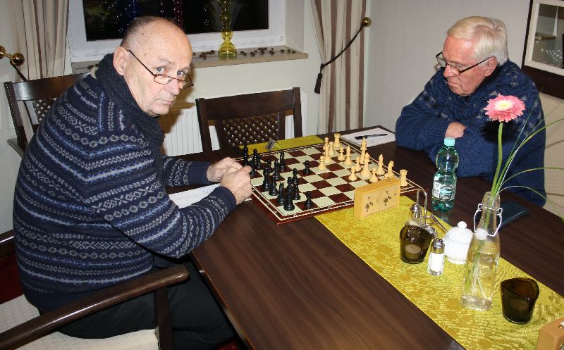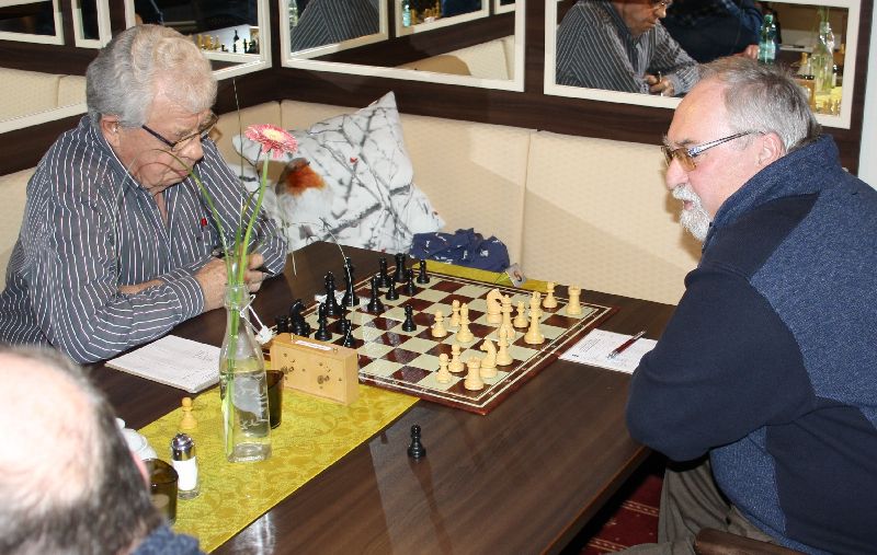 v. l..: unser Brett 1, Jörg Gerstel, dahinter unser Senior Dr. Wolfgang Pieper/ Brett 2
