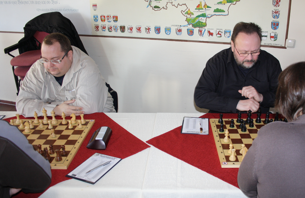 Brett 1: Jörg Gerstel spielte gegen den über 200-DWZ-Punkten besseren Schachfreund Haseroth toll auf, hätte gewinnen können, aber das Remis war auch "klasse", war letztlich aber nicht spielendscheidend.